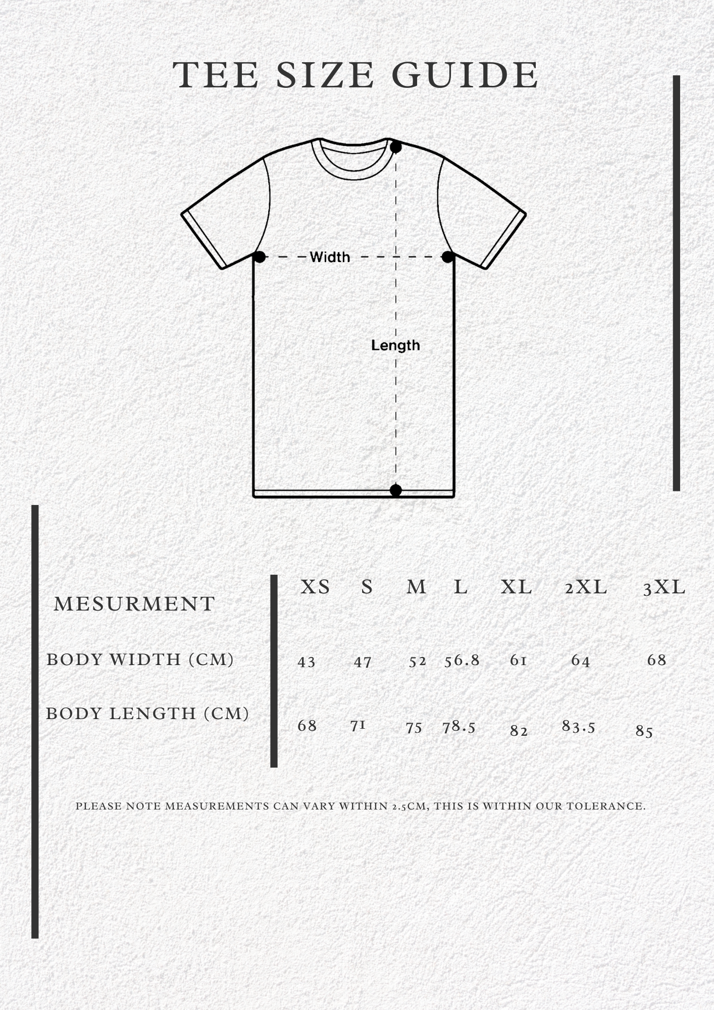 - Sizing Chart in photos