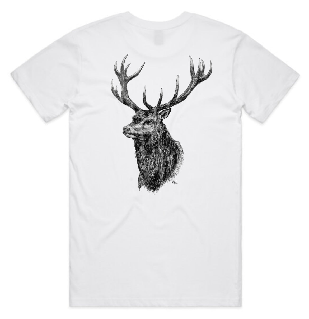 Introducing the Roaring Wild Nz Black and White Red Stag Head T-Shirt, a versatile and stylish option for those who love spending time in the great outdoors. Available in a range of colors, this t-shirt allows you to express your personal style while showcasing your love for nature, it is the perfect addition to your wardrobe. a Roaring Wild NZ orginal design DTG printed on a AS Colour Mens Staple T shirt.