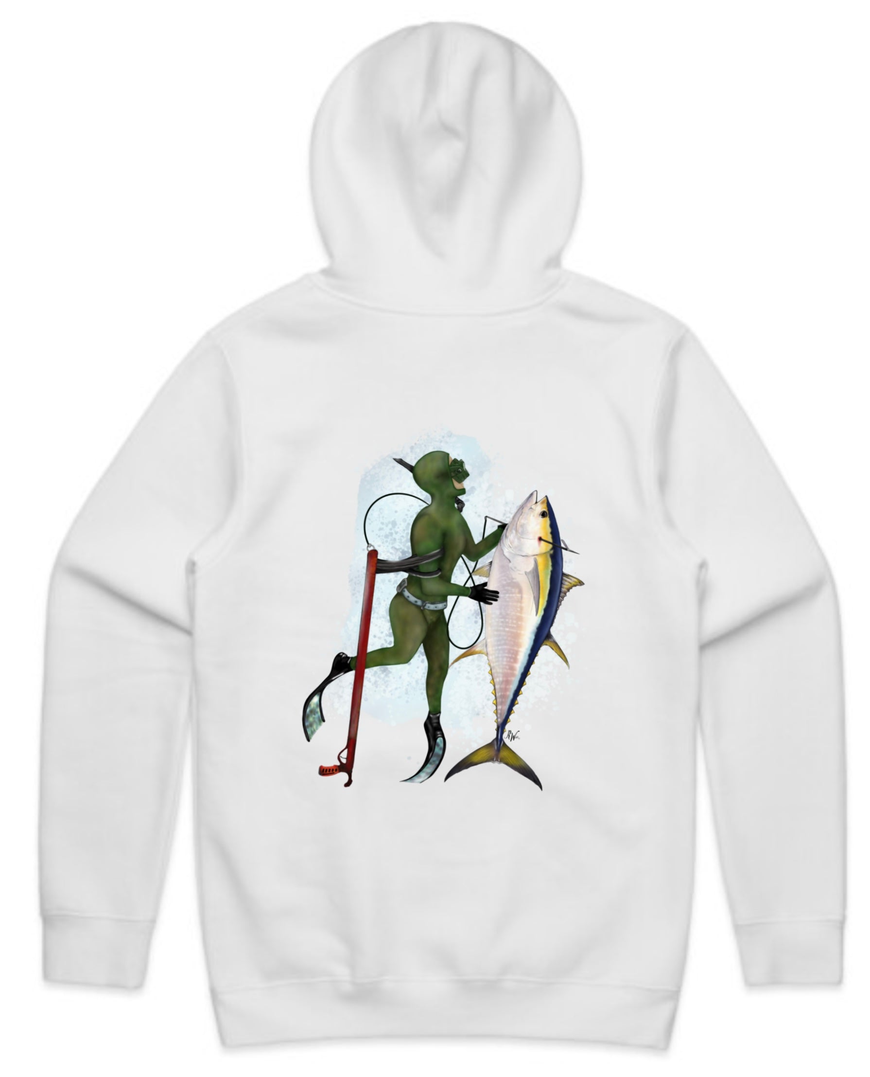 Introducing the Roaring Wild Nz Diver With Yellow Fin Tuna Hoodie is the perfect addition to your casual wardrobe. This stylish hoodie features our iconic Black and White Logo on dark colours or our Normal Logo on light colours (see photos above).